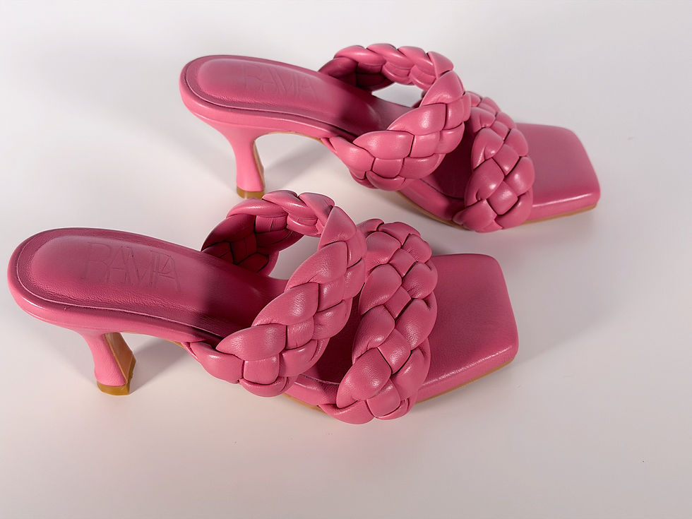 A bold red that embodies passion, power, and fearless confidence. This shoe is meticulously crafted from genuine leather, featuring signature braided straps and a modern square silhouette with non-skid soles for stability. Each pair is handmade by shoe artisans in the Philippines.